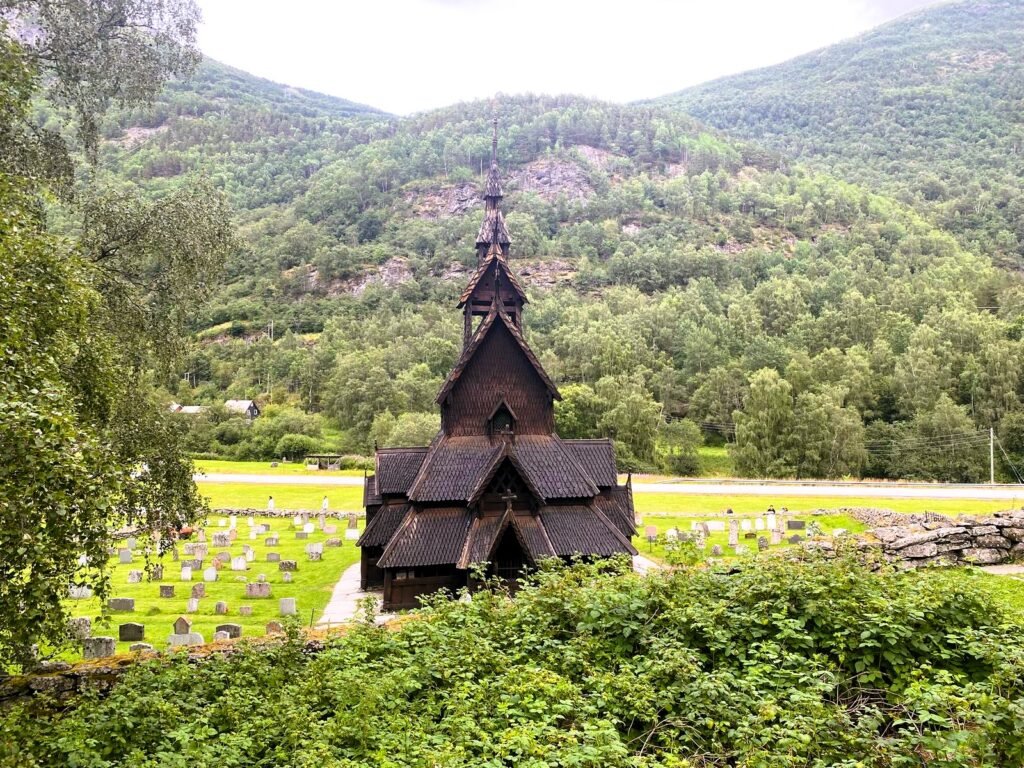 De repente, al fondo aparece la iglesia de Borgund. Es enorme; no me había imaginado que una estructura tan grande de madera se pudiera mantener en pie durante tantos años. Fue construida a partir del año 1180, casi dos siglos después de la cristianización noruega y más de 100 años después de comenzar la construcción de la gran catedral de Nidaros. Este último aspecto también me ha llamado siempre la atención: en las grandes ciudades, los noruegos eligieron materiales pétreos, mientras que en las zonas rurales utilizaron el material que mejor sabían trabajar, la madera. La tradición vikinga siguió viva en el interior de Noruega. La derrota de Harald III Hardrada, hermanastro menor de San Olaf, en la batalla de Stamford Bridge, cuando intentaba conquistar Inglaterra, puso fin a una época, pero dio paso a otra.